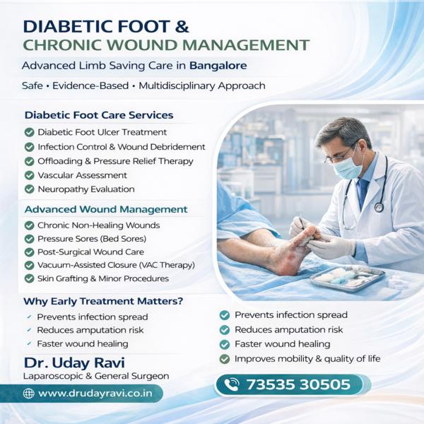 Diabetic Wound Care in Rajaji Nagar, Bangalore – Advanced Treatment & Expert Surgical Care by Dr. Ud